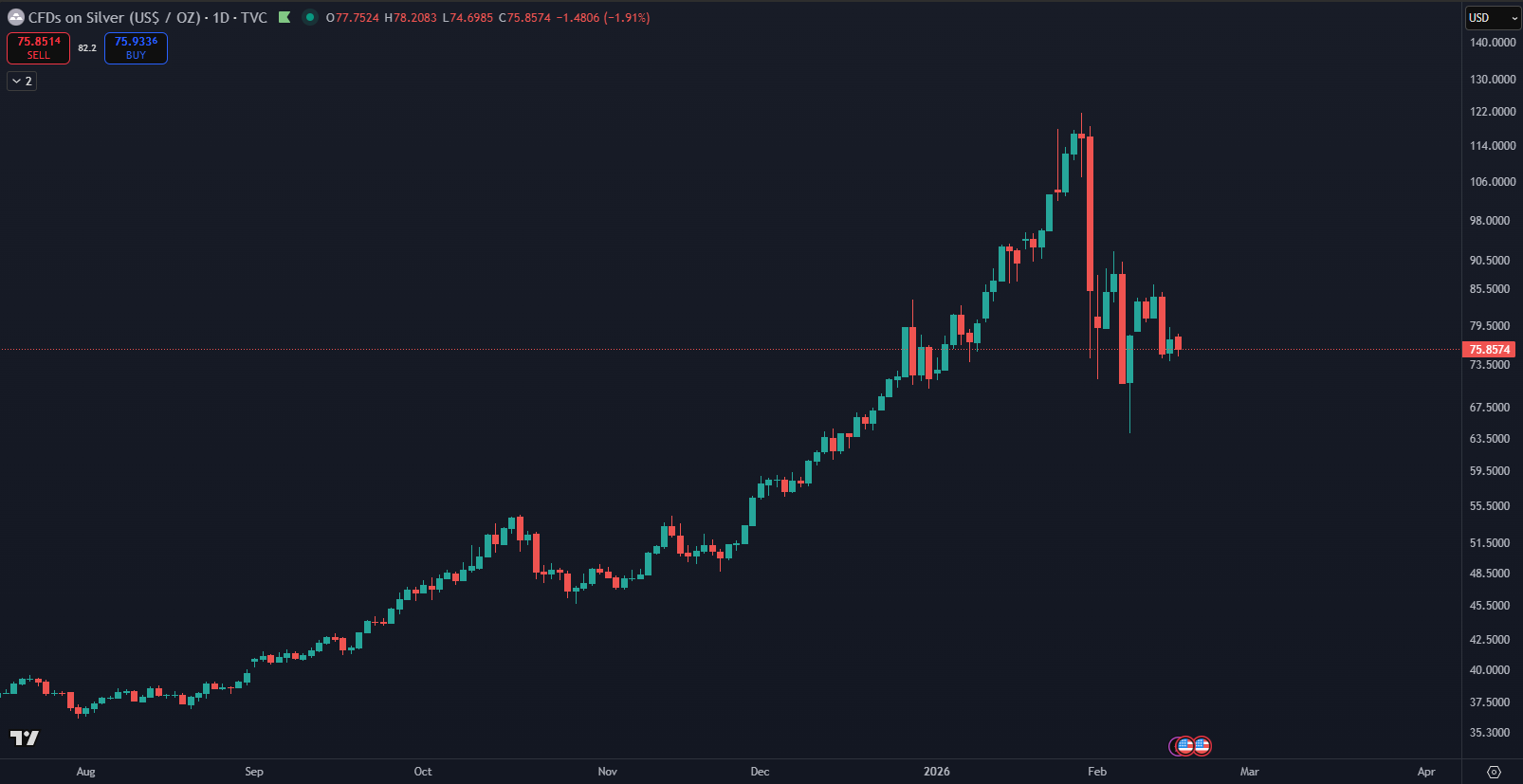 Investor zároveň upozorňuje na potenciál striebra, ktoré podľa jeho názoru zostáva podhodnotené. Nedávno nakúpil stovky strieborných mincí a uviedol, že aktuálna cena približne 82 dolárov za uncu stále predstavuje príležitosť. Medzitým však došlo podľa TradingView k poklesu na 75 dolárov.
