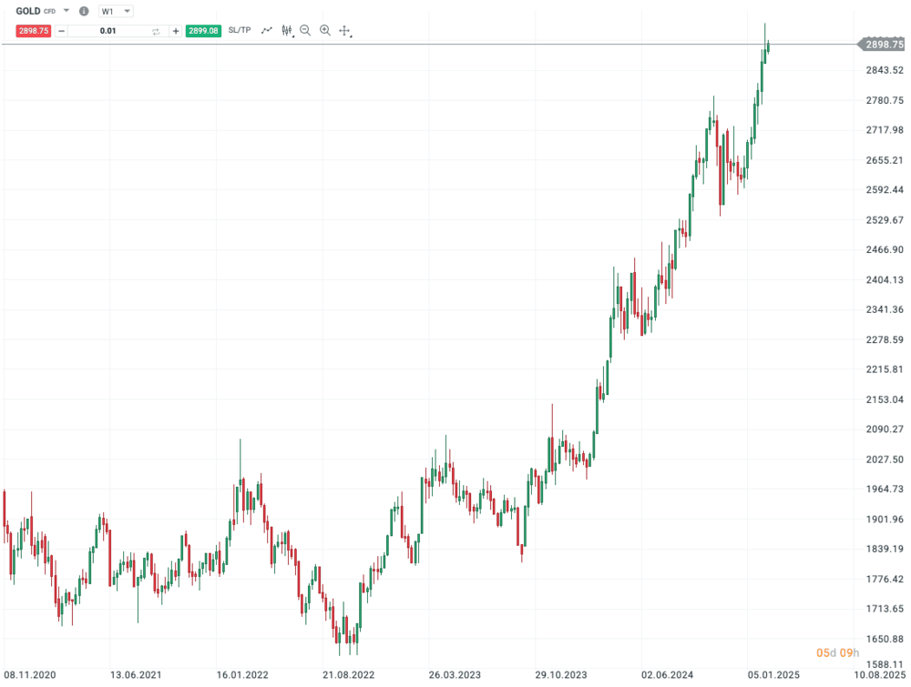 Analytici očakávajú pre rok 2025 pokračujúci rast ceny zlata, aj keď miernejším tempom ako v predchádzajúcom roku, keď zlato vzrástlo o viac ako 20 % a v raste pokračuje aj tento rok. V súčasnosti sa ceny zlata nachádzajú na historických maximách.