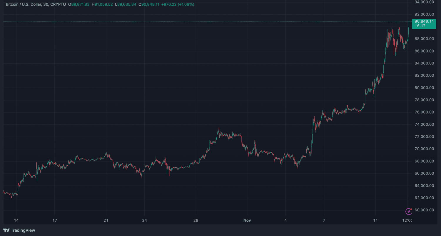 Bitcoin zaznamenal v poslednom čase významný nárast, pričom jeho cena sa pohybovala medzi 70 906 a 85 325,74 dolára. Za posledný týždeň získal viac ako 30 % a za posledný mesiac viac ako 40 %. Súčasná dynamika posunula index relatívnej sily (RSI) nad 75, čo naznačuje prekúpené podmienky. Ak rally bude pokračovať, Bitcoin by mohol otestovať najbližšiu úroveň odporu okolo 90 498,63 dolára a potenciálne mieriť na druhý odpor blízko 104 918,37 dolára. Obchodníci by však mali byť opatrní, pretože indikátory prekúpenosti naznačujú možný pokles smerom k úrovniam podpory na 61 659,15 dolára alebo dokonca 47 239,41 dolára. Nasledujúce dni ukážu, či si Bitcoin dokáže udržať svoj vzostupný trend.