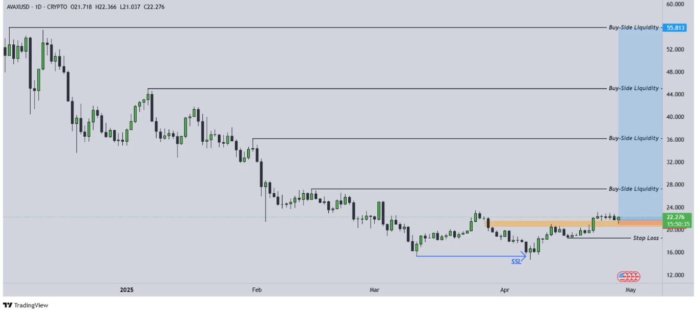 Z technického hľadiska je teraz pre AVAX rozhodujúce, ako cena zareaguje na novo vytvorenú zónu podpory – zónu, ktorá ešte nedávno pôsobila ako kľúčová rezistencia. Tento obrat úlohy je jednou z dvoch rozhodujúcich podmienok pre vstup do reverzného obchodu.