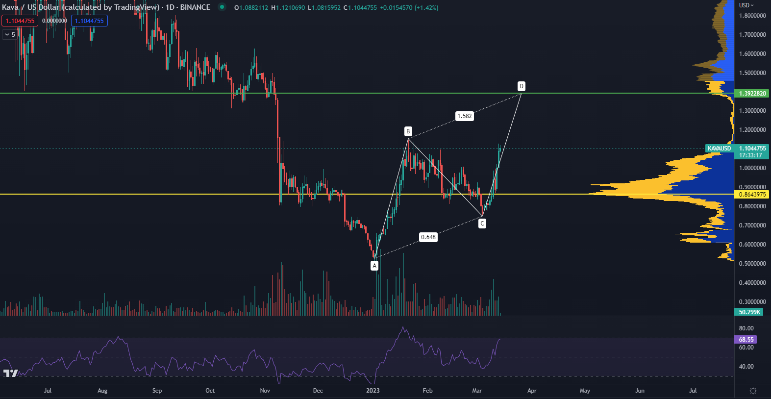 Je pozoruhodné, ako kryptomena KAVA dokázala odolať nedávnym turbulenciám na trhu kryptomien a rástla aj keď celý trh padal. Podľa údajov z TradingView, sa v čase písania článku obchoduje na cenovej úrovni 1,10 dolárov. A stále má priestor na pokračovanie rastúceho trendu.