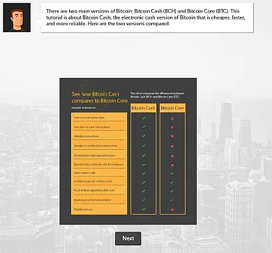 V sekcii vyššie majú návštevníci možnosť prejsť krátkym kurzom. Škoda, že autori stránok akosi pozabudli, že ide o BCash a názov kurzu pomenovali „Začnite s Bitcoinom“