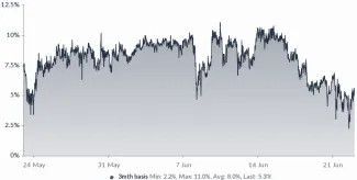 V najlepších prípadoch a obdobiach na trhu sa futures kontrakty obchodujú s ročnou prémiou 5 až 15%. Teda prípad je známy pod označením contango. V prípade, ktorý nastal 22.júna bola táto hodnota iba na úrovni 2,5%.