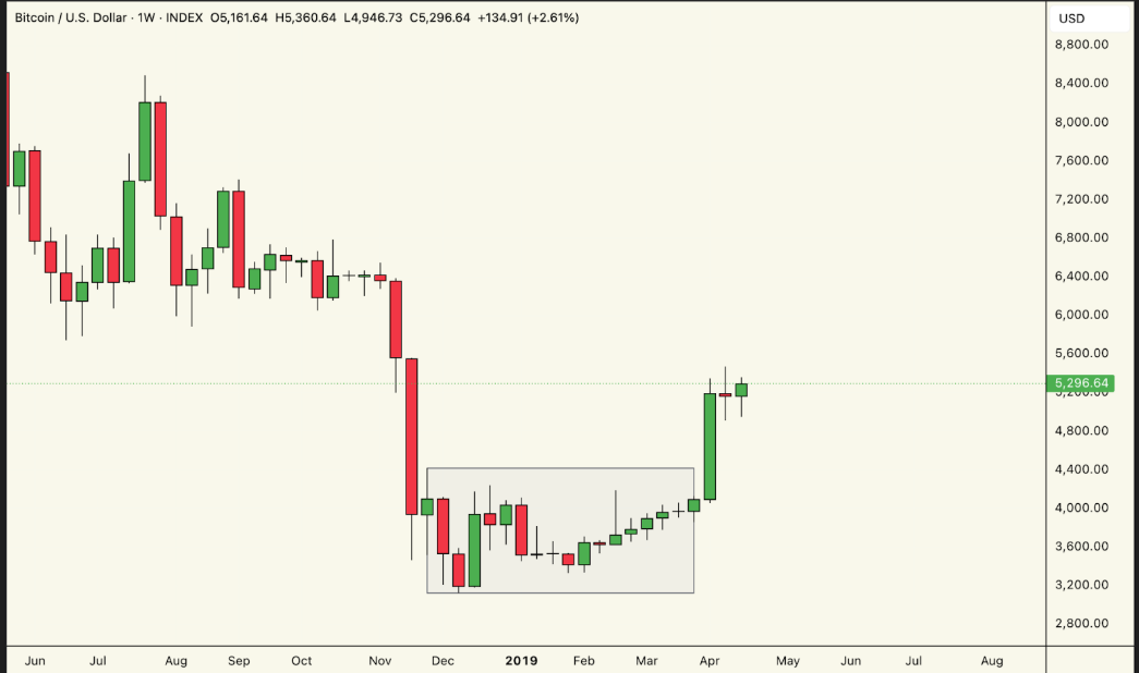 Od februára do apríla 2019 sa cena Bitcoinu vyšplhala nad 5 000 dolárov, čím odštartovala ďalší rastový trend. To, či samotné obnovenie vlády bolo hlavnou príčinou oživenia trhu, je diskutabilné, minimálne však pôsobilo ako silný katalyzátor opätovnej dôvery.