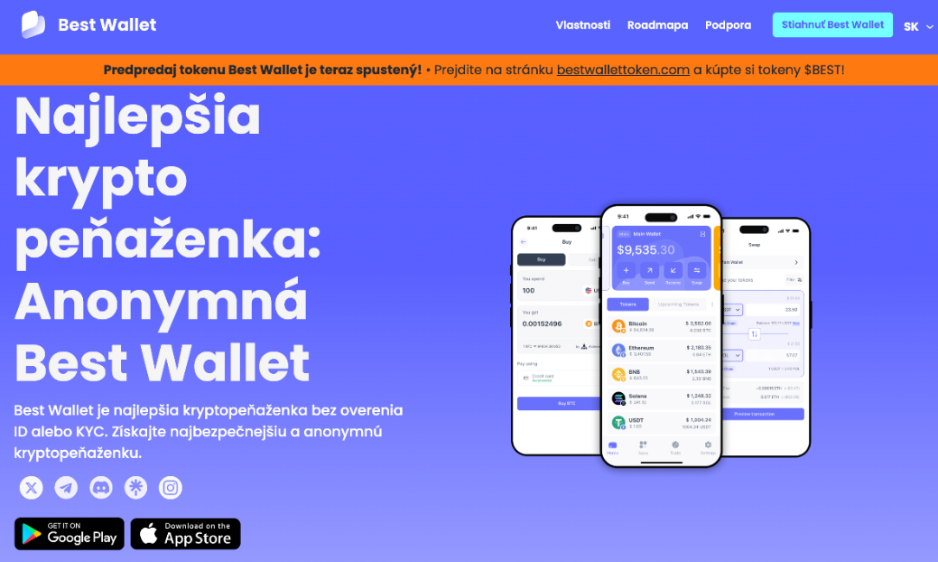 Jedným z takýchto riešení je kryptopeňaženka Best Wallet, ktorá ponúka široký repertoár funkcií a vysokú úroveň bezpečnosti. Mobilná aplikácia je dostupná pre iOS aj Android – svoje portfólio môžete sledovať a spravovať kdekoľvek.