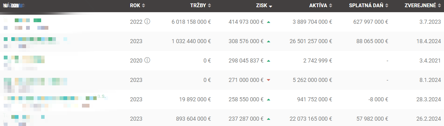- Tieto firmy dosahujú zisky v hodnote stoviek miliónov eur.